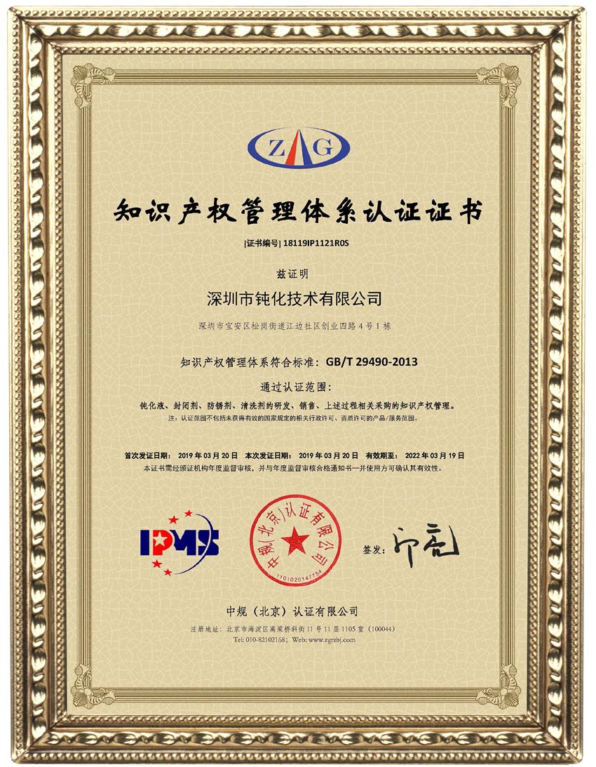 知識產(chǎn)權(quán)管理體系認證證書